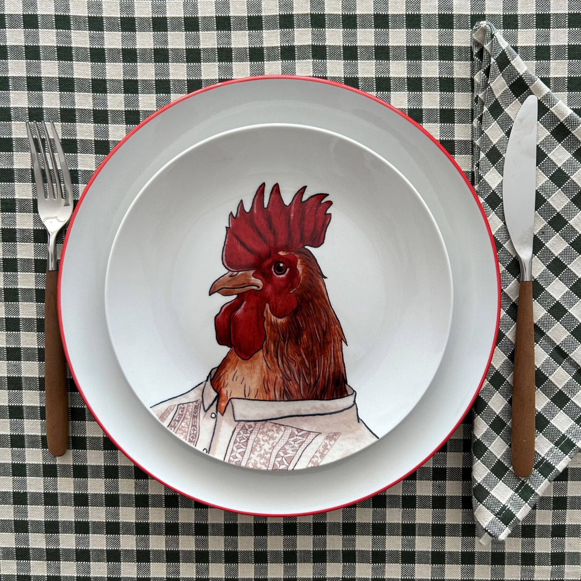 - Plato llano elaborado en porcelana.